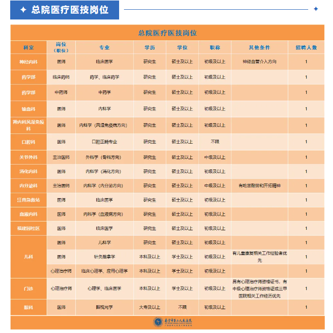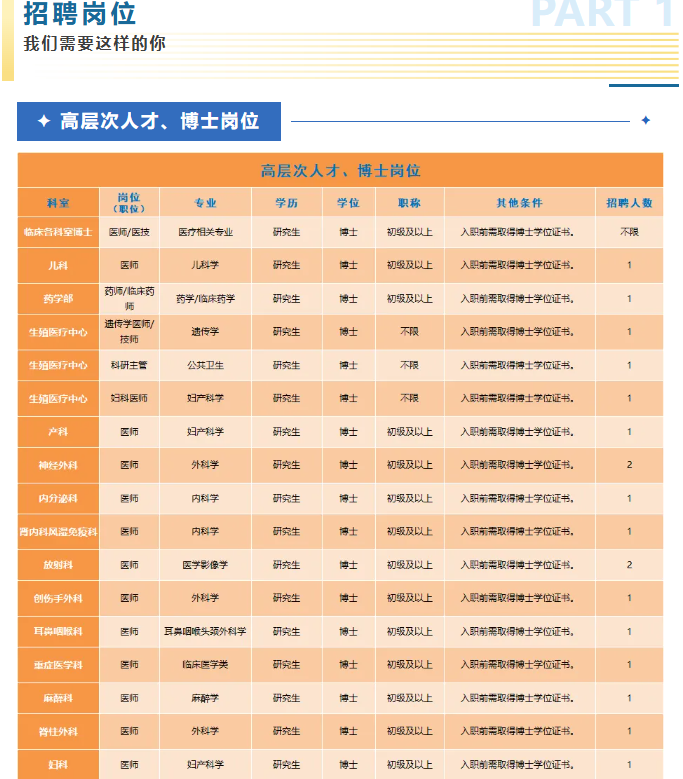 以上崗位均享受醫(yī)院科研獎(jiǎng)勵(lì)、培訓(xùn)進(jìn)修、晉升職務(wù)職稱等權(quán)利,以及五險(xiǎn)一金、用餐補(bǔ)助、帶薪年休假、工會(huì)福利等待遇。
