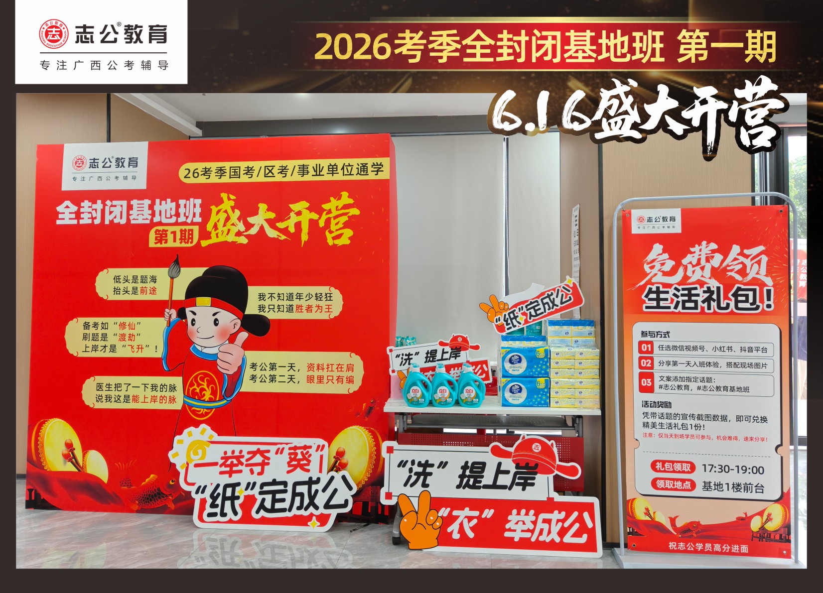 今天的開班還有一系列小活動噢~瞧!——“學員打卡活動”,所有今天到場的基地班學員,通過做一些小任務的方式,可以到前臺領(lǐng)取生活禮包即可領(lǐng)取生活禮品1份(一提六包的紙巾,或者一瓶洗衣液),這也是志公教育對所有學員的美好祝愿,預祝大家未來能夠“紙”定成公,“洗”提上/岸,“衣舉成公”!
