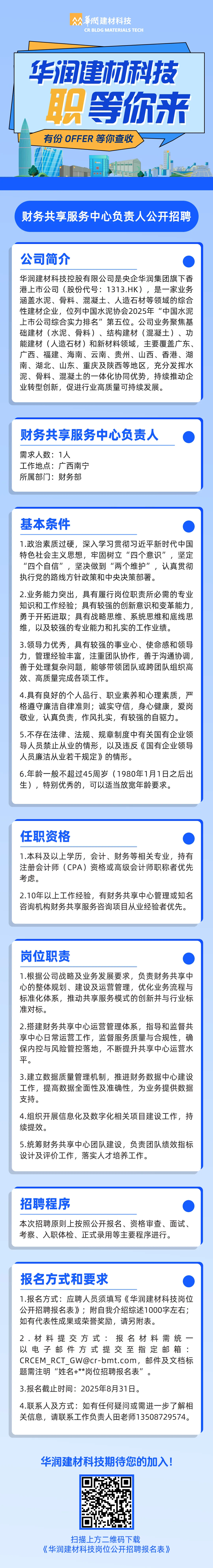 2025年華潤建材科技財務(wù)共享服務(wù)中心負責人公開招聘公告