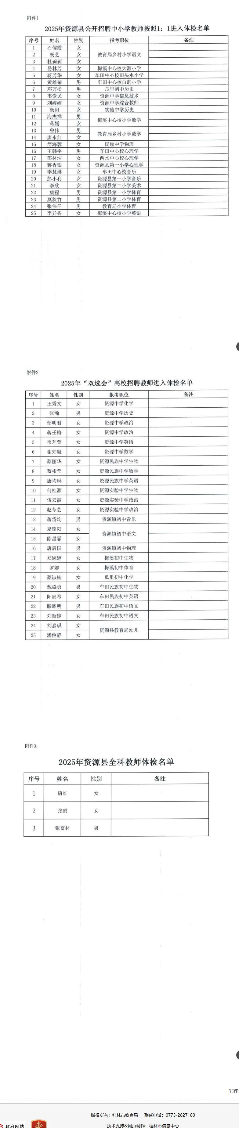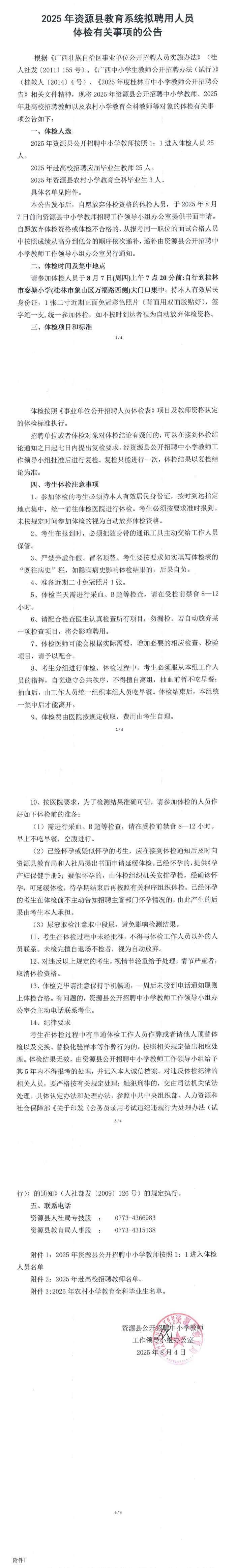 2025年資源縣教育系統(tǒng)擬聘用人員體檢有關(guān)事項(xiàng)的公告