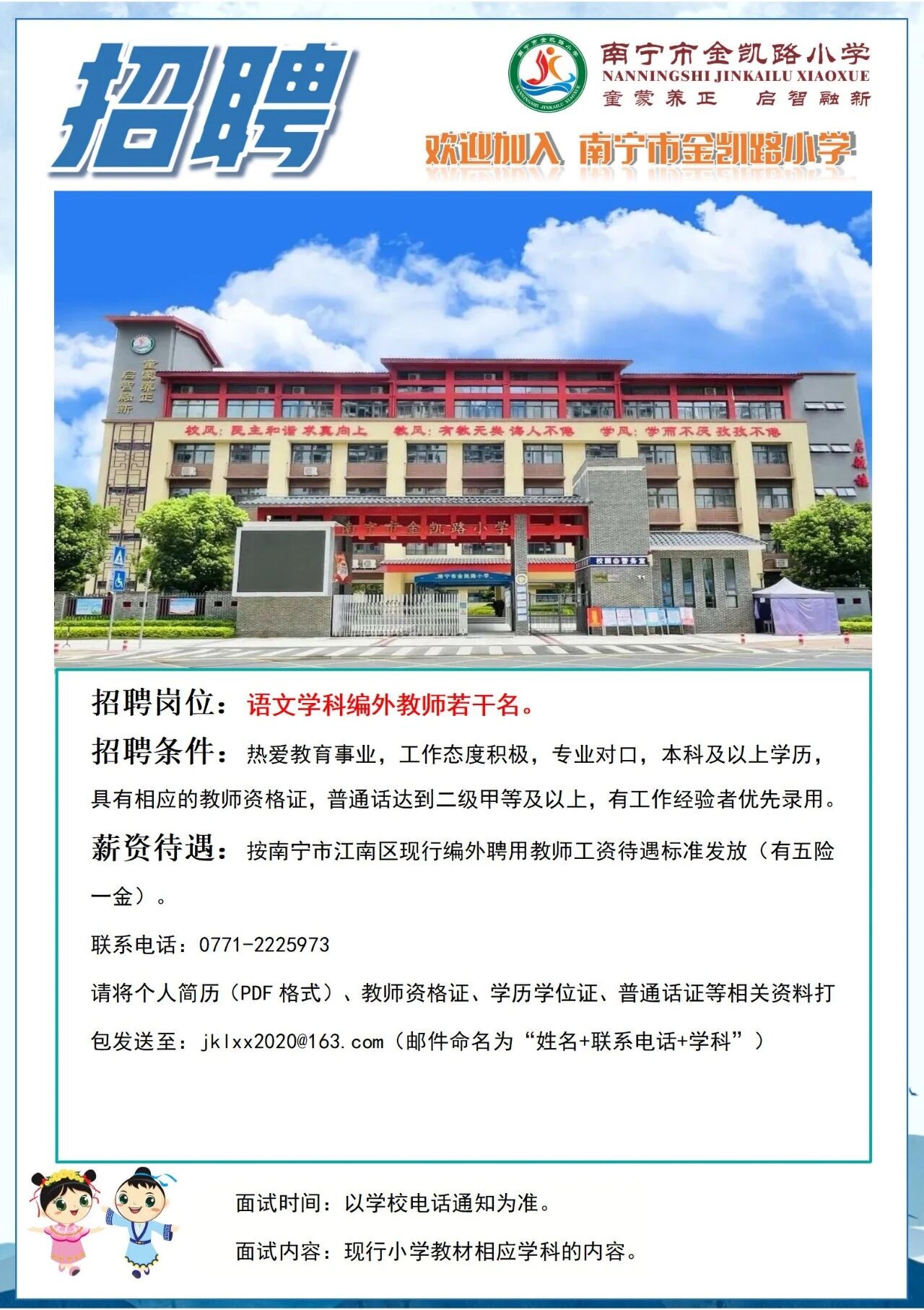 2025年南寧市金凱路小學(xué)招聘語文學(xué)科編外教師若干人