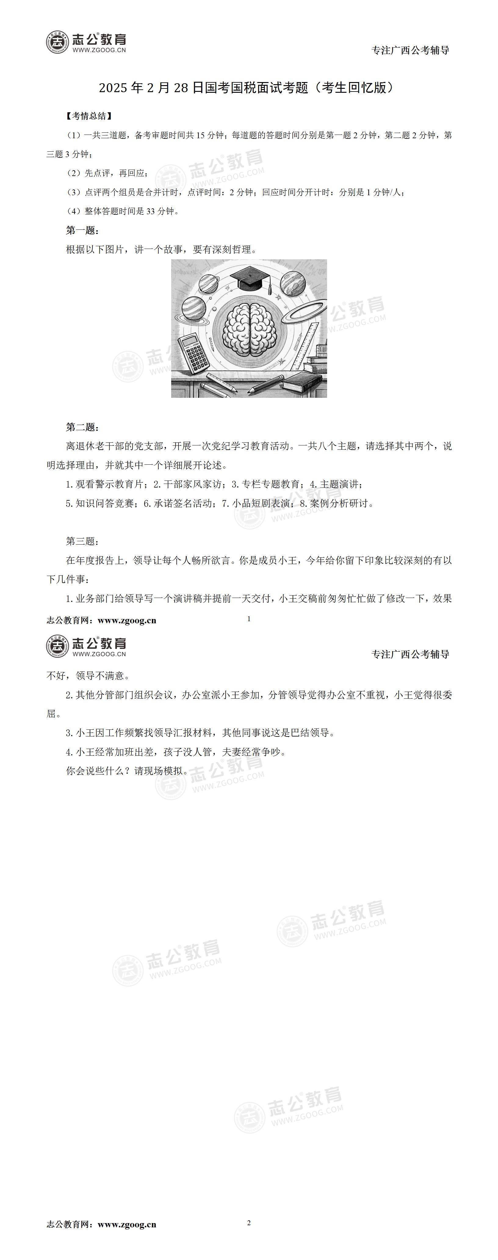 2025年國(guó)考國(guó)稅2月28日面試考題(考生回憶版)