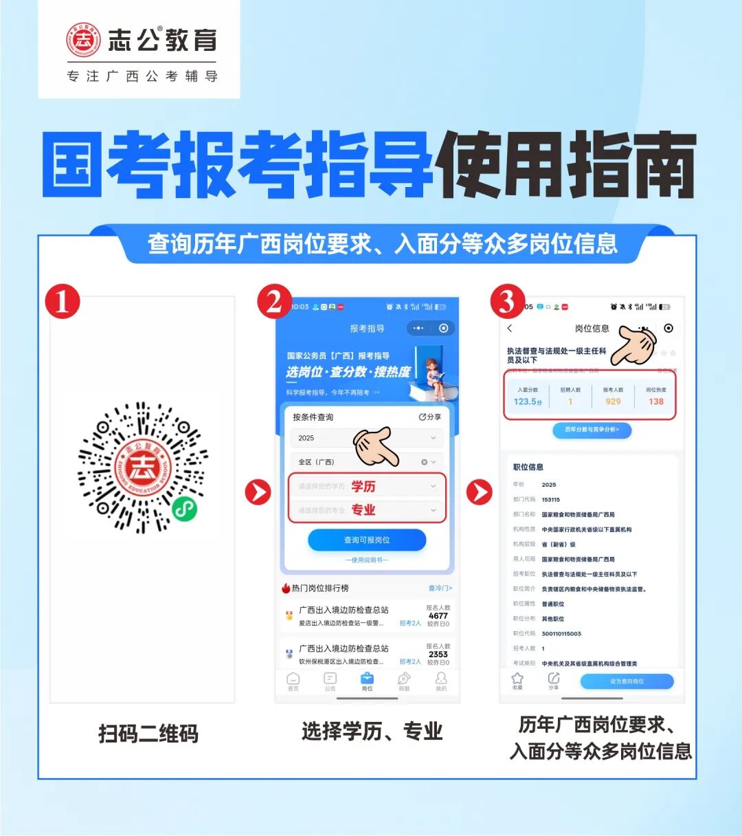 ?善用工具篩選:在志公教育研發(fā)的“公考天眼”小程序中,可獲可查詢(xún)歷年廣西崗位要求、入面分、報(bào)考人數(shù)等眾多崗位信息。