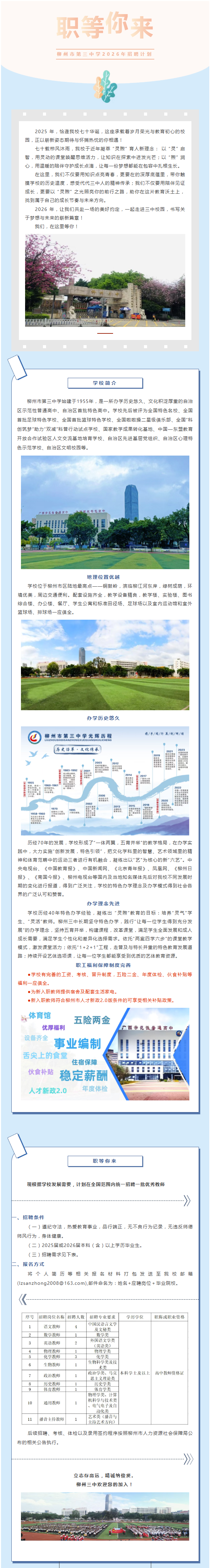 柳州市第三中學(xué)2026年招聘計(jì)劃19人