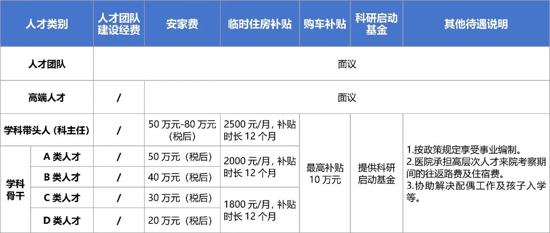 聘用為急需緊缺專業(yè)崗位醫(yī)師(緊缺專業(yè)包括:重癥醫(yī)學(xué)科、麻醉科、感染性疾病科、兒科、急診醫(yī)學(xué)科、病理科、精神科、產(chǎn)科、神經(jīng)外科、超聲科)的碩士研究生或符合“雙一流”建設(shè)高校及“雙一流”建設(shè)學(xué)科碩士研究生,給予5-10萬安家費(fèi)。