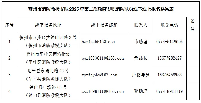 2025年賀州市消防救援支隊(duì)公開(kāi)招錄政府專職消防隊(duì)員的公告