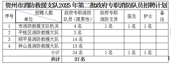 根據(jù)工作需要,賀州市消防救援支隊(duì)面向社會(huì)公開(kāi)招錄政府專職消防隊(duì)員,現(xiàn)將有關(guān)事項(xiàng)公告如下。