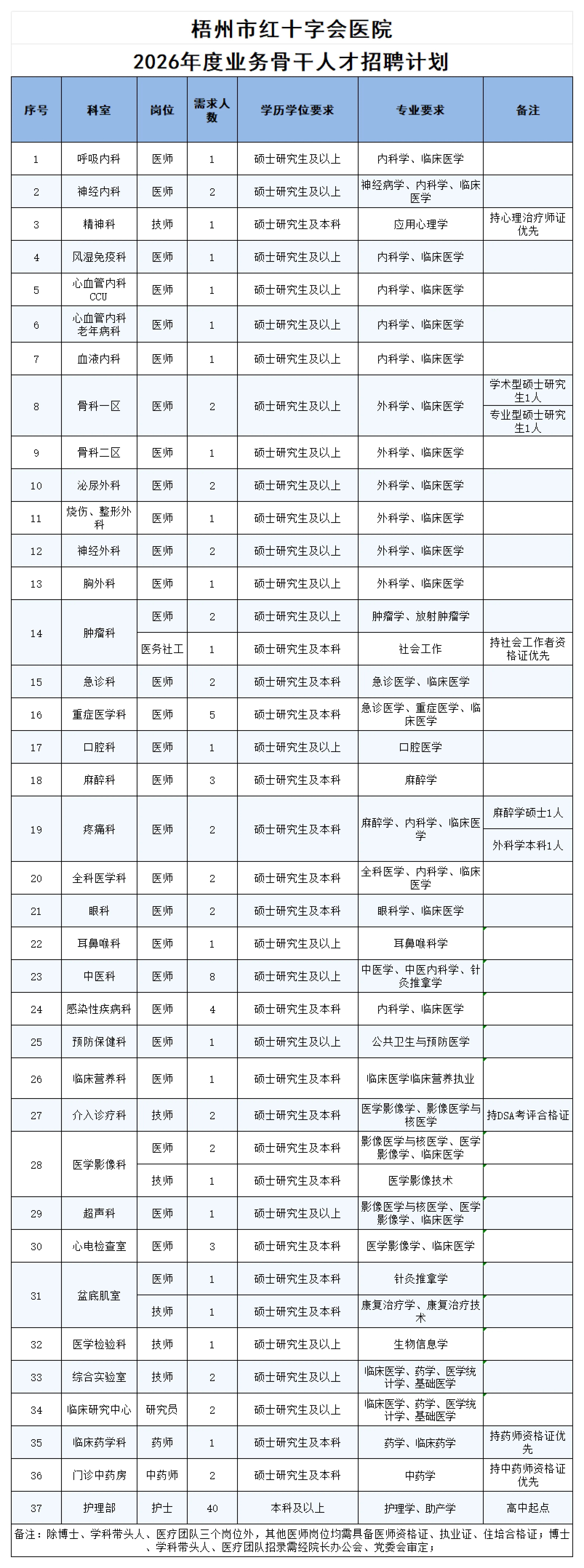 梧州市中西醫(yī)結(jié)合醫(yī)院2026年人才招聘公告